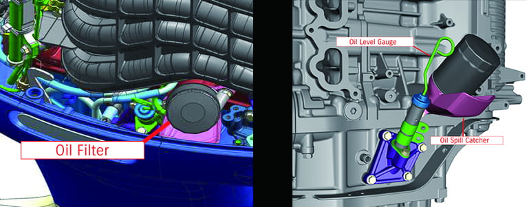 - Oil Spill Catcher : A tray is added around the oil filter to catch oil which comes out when exchanging the oil filter